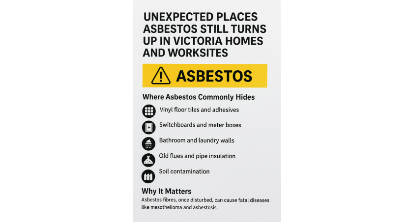 Most people expect asbestos in old roofs or fences, but it often surprises clients when we show them the less obvious places it hides. Even in 2025, asbestos remains one of the most common hazardous materials we deal with across Melbourne and regional Victoria. Knowing where it turns up and how to manage it is critical to keeping your property safe and compliant.